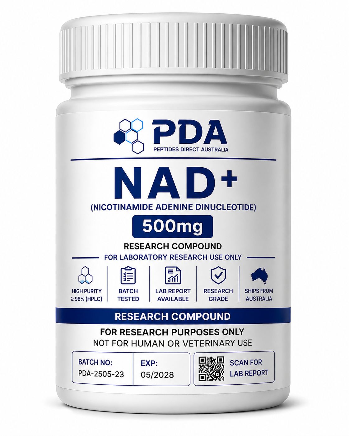 Buy NAD+ 500mg in Australia. High-purity coenzyme for cellular energy, redox, and metabolic pathway research.