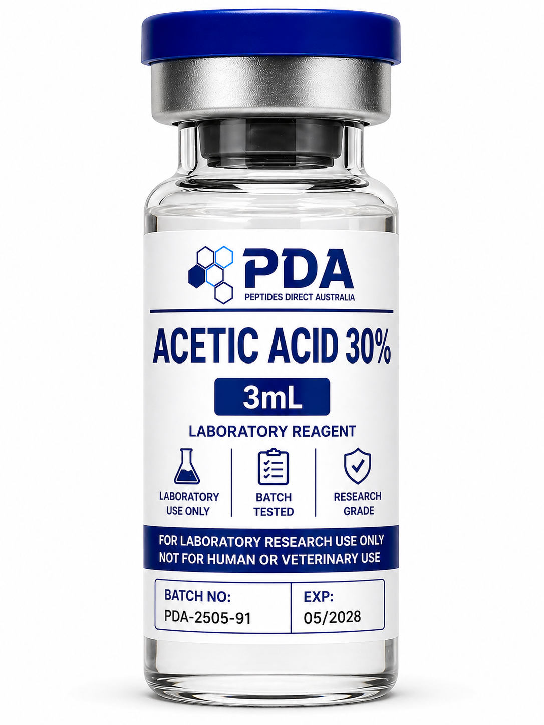 Buy 30% Acetic Acid 3mL in Australia. Laboratory reagent for pH adjustment, buffer preparation, and analytical workflows.