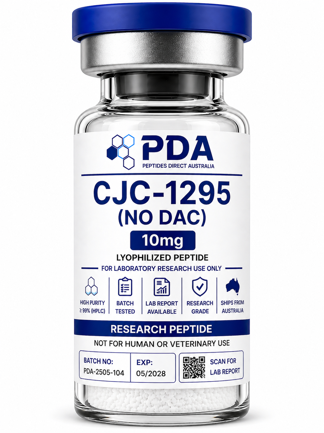 Buy CJC-1295 No DAC 10mg in Australia. Short-acting GHRH analog for controlled endocrine and peptide signalling research.