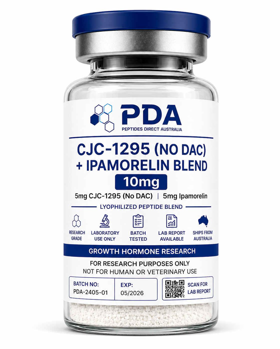 Buy CJC-1295 No DAC + Ipamorelin blend in Australia. Dual-peptide research compound for growth hormone signalling studies with fast shipping.