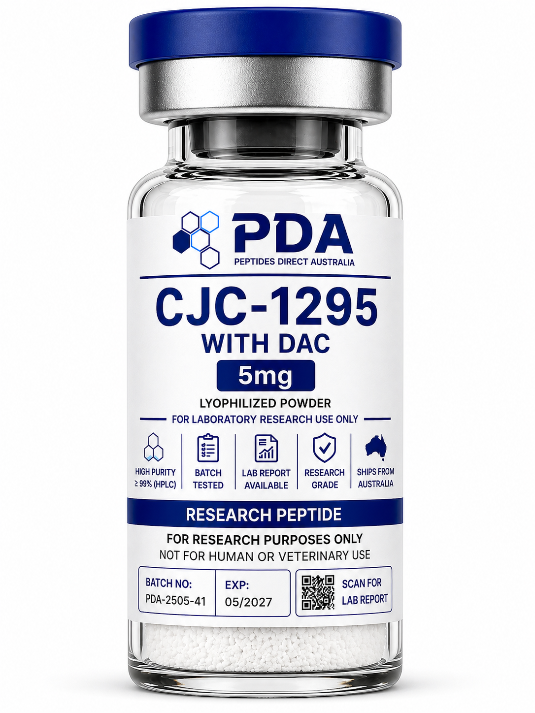 Buy CJC-1295 With DAC 5mg in Australia. Long-acting GHRH analog for endocrine and extended signalling pathway research.