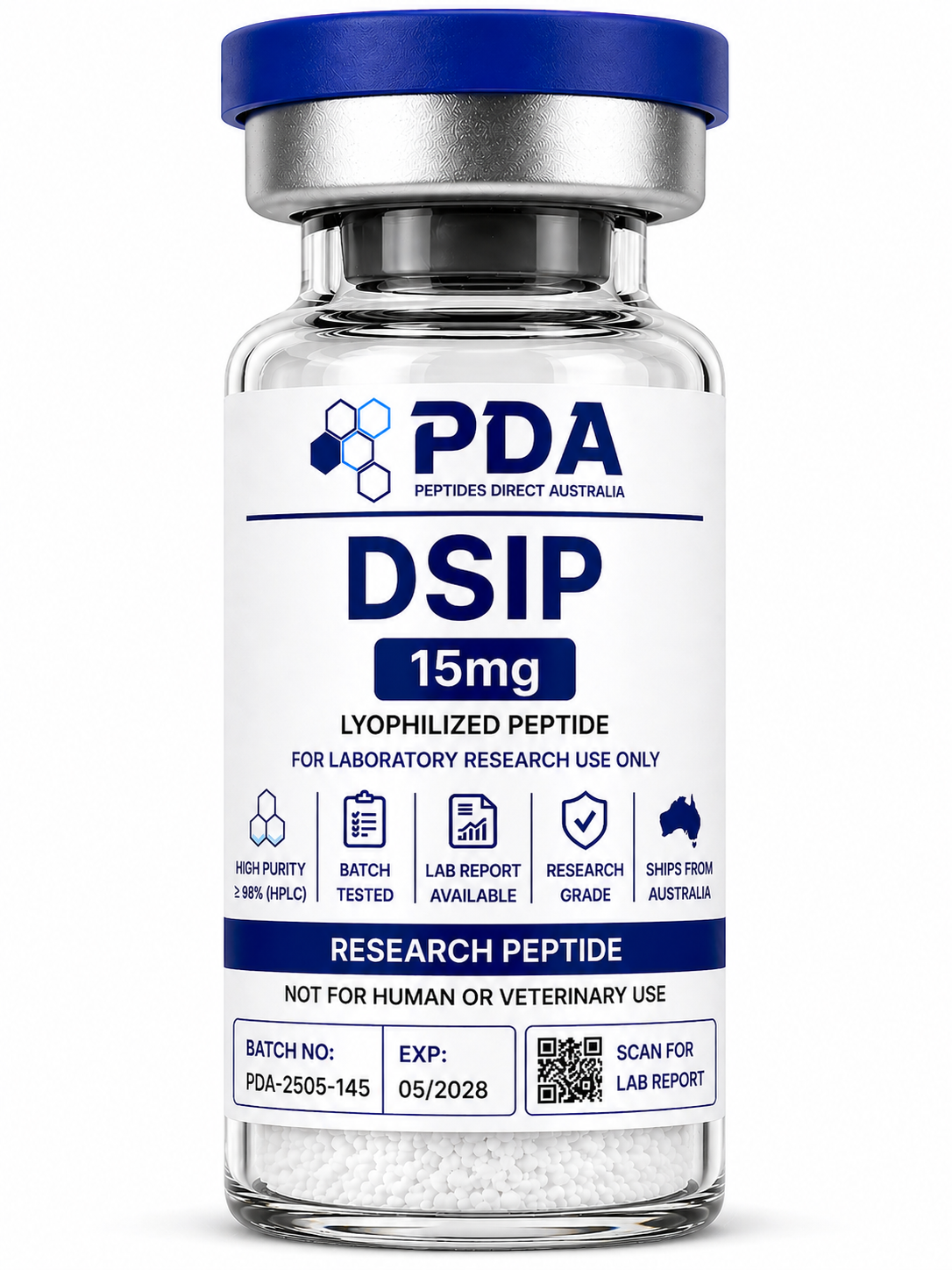 Buy DSIP 15mg in Australia. Neuropeptide for circadian, regulatory, and signalling pathway research.