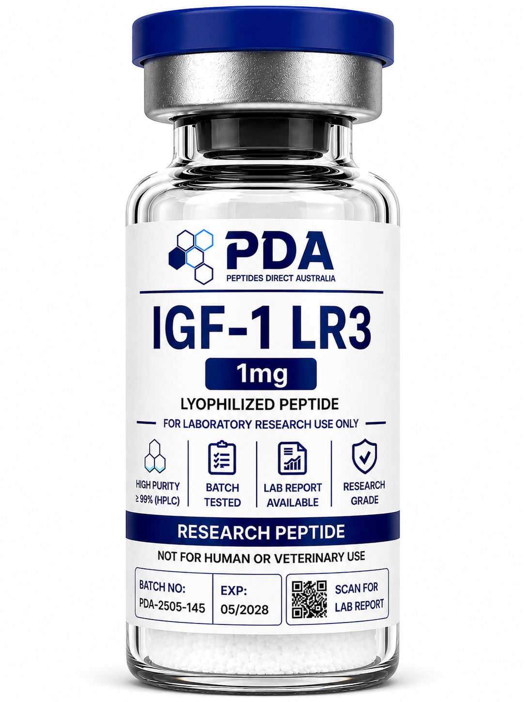 Buy IGF-1 LR3 1mg in Australia. Long-acting growth factor analog for cellular signalling and receptor pathway research.