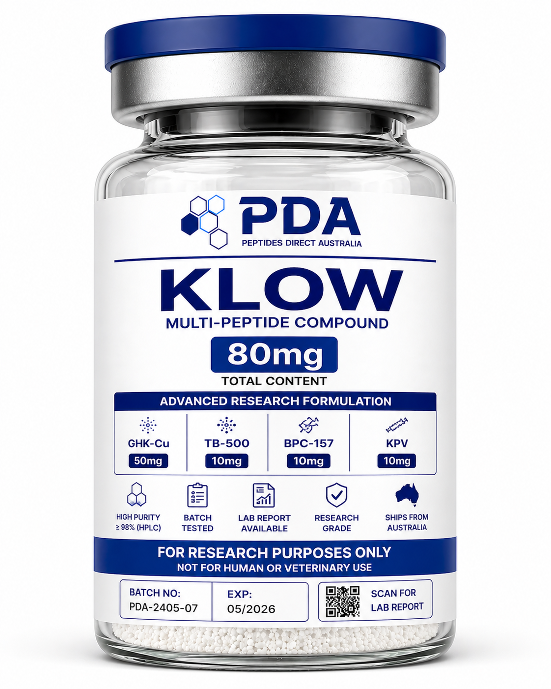 Buy KLOW 80mg multi-peptide compound in Australia. High-capacity blend combining four peptides for advanced tissue and regenerative research.