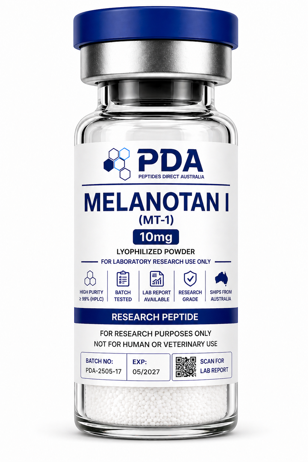 Buy Melanotan I 10mg in Australia. MT-1 peptide for melanocortin receptor and pigmentation pathway research.