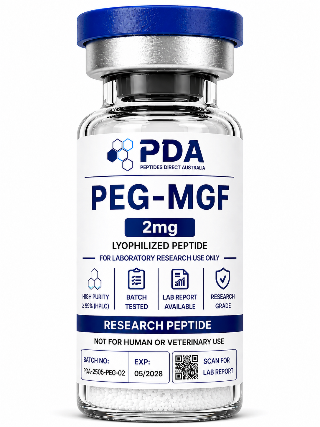 Buy PEG-MGF 2mg in Australia. PEGylated growth factor peptide designed for extended cellular signalling and receptor pathway research.