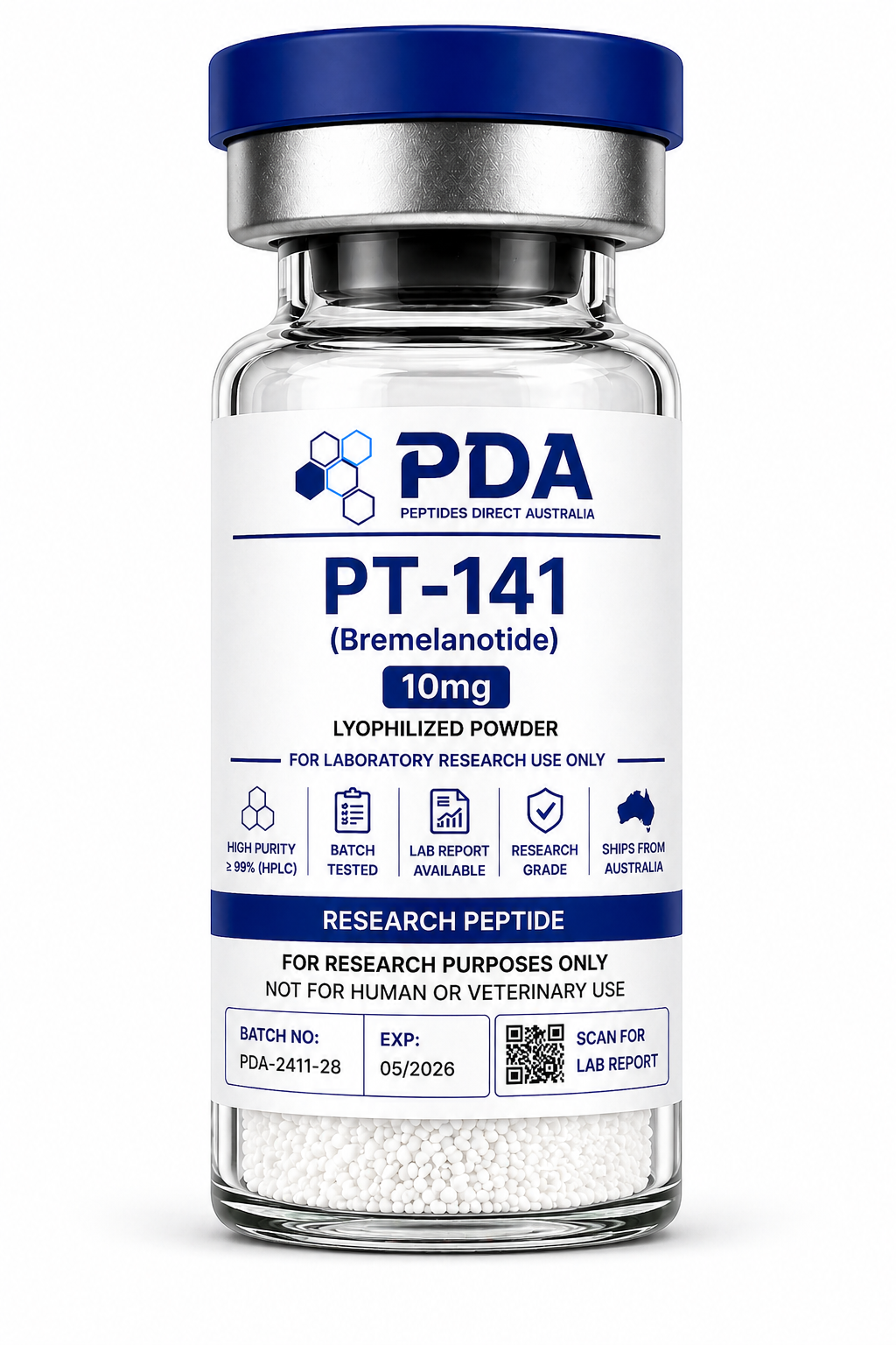 Buy PT-141 10mg in Australia. Bremelanotide peptide for melanocortin receptor and signalling pathway research.
