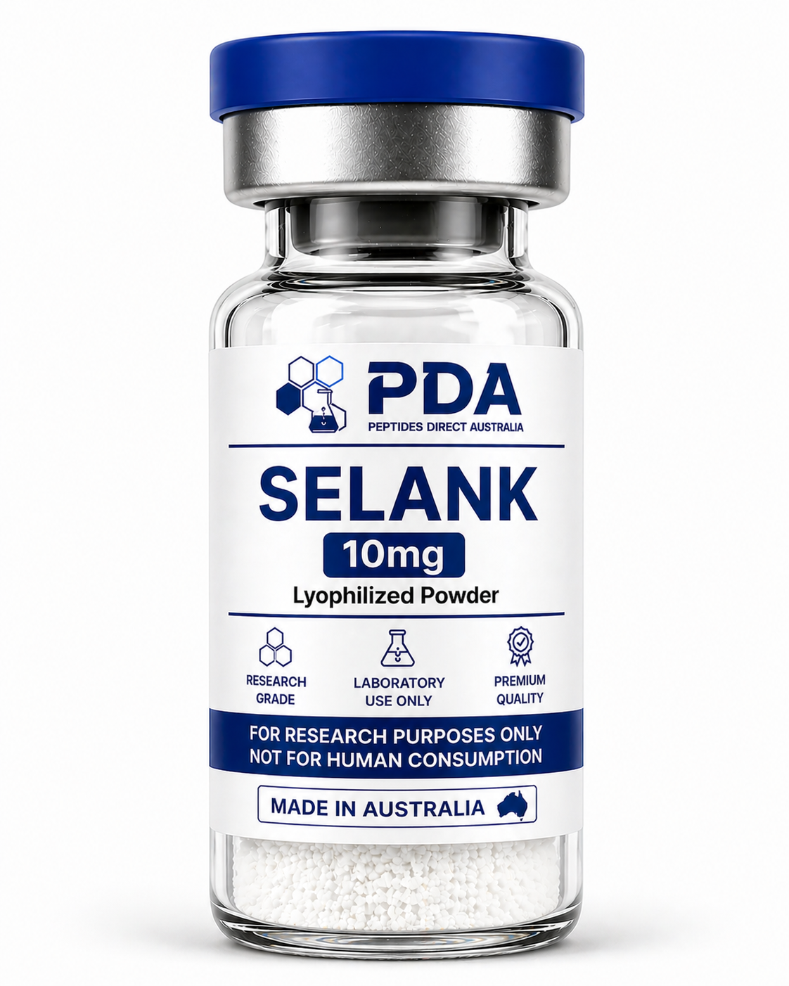 Buy Selank 10mg in Australia. Neuropeptide derived from Tuftsin for cognitive and neurotransmitter pathway research.