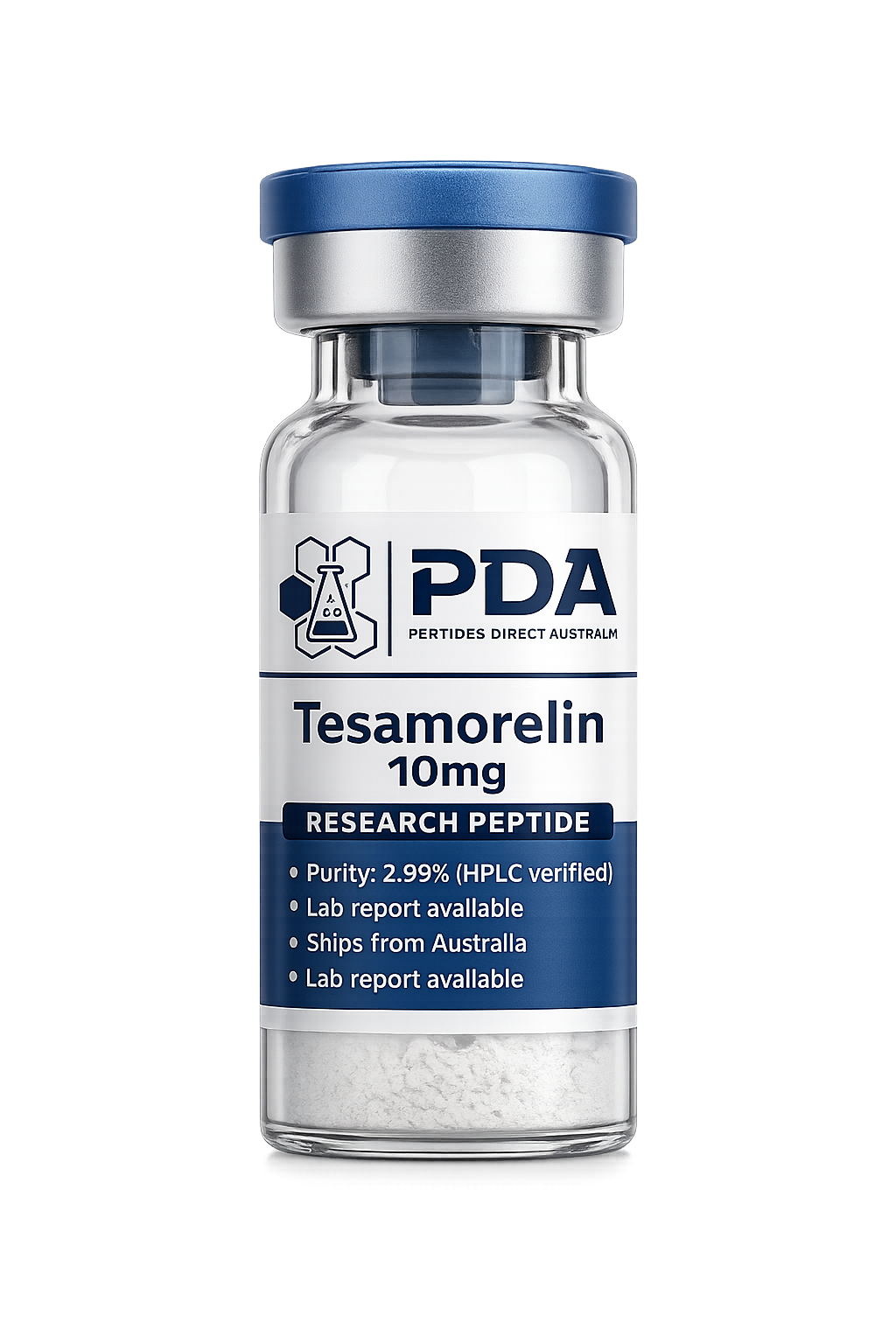 Buy Tesamorelin 10mg in Australia. GHRH analog (TH9507) supplied as a high-purity lyophilized peptide for endocrine and metabolic research.